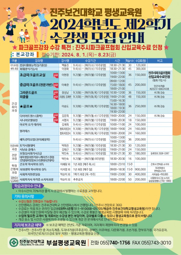 진주보건대학교 평생교육원 일반과정 수강생 모집안내