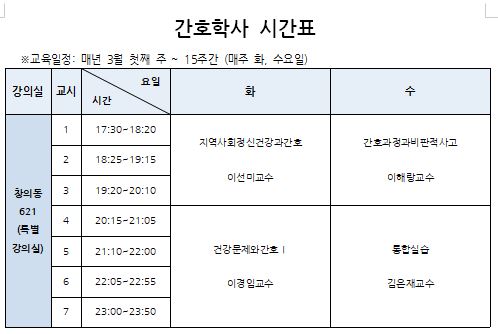 ※교육일정: 매년 3월 첫째 주 ~ 15주간 (매주 화, 수요일)